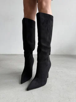 Сапоги на каблуке шпильке трубы с острым носом осень