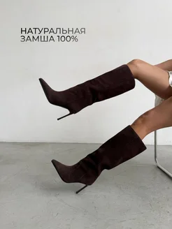 Сапоги трубы на шпильке с широким голенищем натуральная кожа