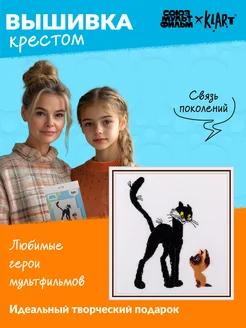Вышивка крестиком набор Черный кот и котенок Гав 14x18 см