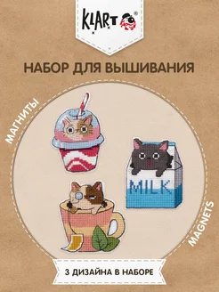 Вышивка крестиком набор Магниты Коты прохладительные7.5х7