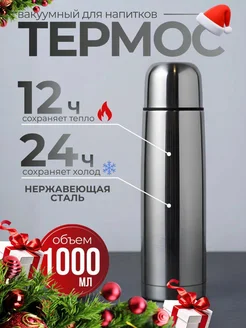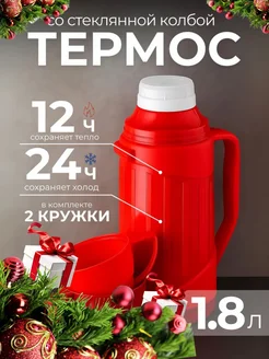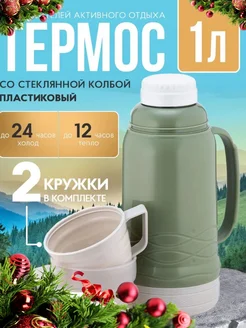 Термос для чая и кофе с литровой стеклянной колбой 1 литр