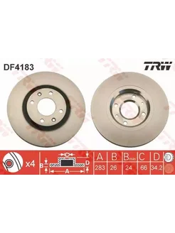 Диск тормозной передний. Комплект 2 шт. Гранд Старекс 2007-