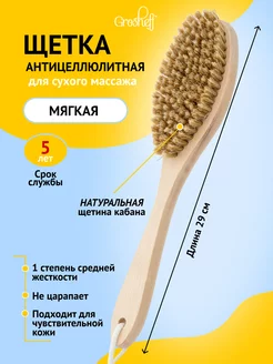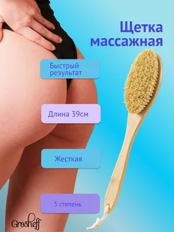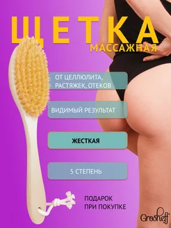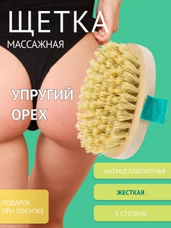 Антицеллюлитная щетка для тела и сухого массажа натуральная