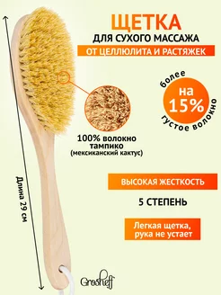 Щетка антицеллюлитная для сухого массажа с тампико кактусом