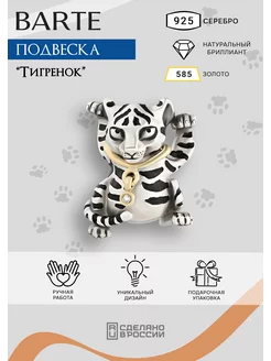 Подвеска серебряная "Тигренок" с бриллиантом, золото 585