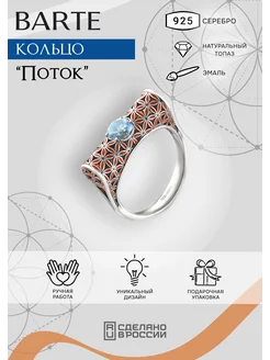 Кольцо серебряное "Поток" 925 пробы с натуральным топазом