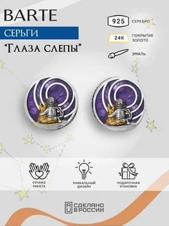 Серьги, серебро 925 Принц и Лис, фиолетовая эмаль