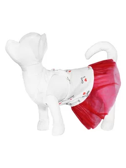 Платье для собак с красной юбкой из фатина, размер S, длина