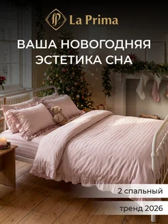 Постельное белье 2 спальное страйп сатин c двойными рюшами