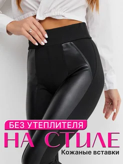 Кожаные леггинсы утепленные лосины на флисе экокожа