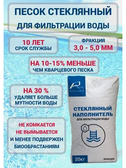Песок стеклянный для фильтрации бассейна фр. 0,5-1,3мм 20кг