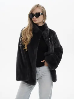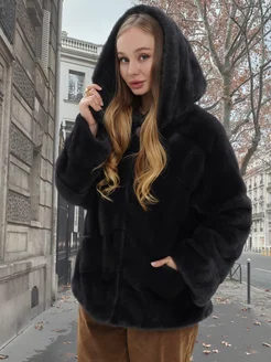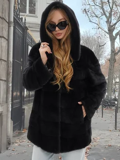 Шуба норковая натуральная короткая с капюшоном автоледи