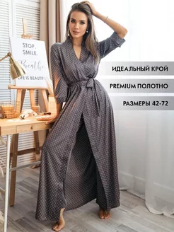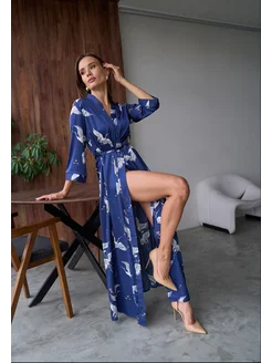 Халат кимоно домашний длинный шелковый на запах без капюшона