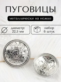 Металлические пуговицы на ножке диаметр 22,5 мм, 6 штук