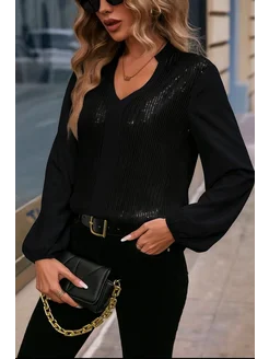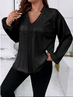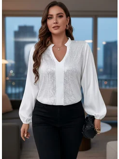 Нарядная блузка больших размеров с блестками, вечерняя