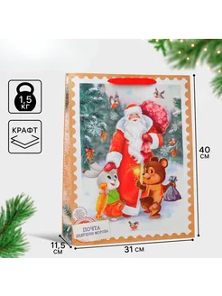 Пакет новогодний крафтовый, L 31 х 40 х 11.5 см