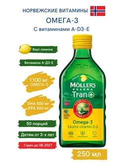 Норвежский рыбий жир Tran Omega 3 со вкусом лимона 250мл