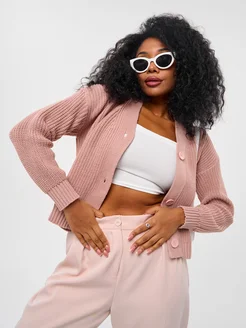 Кардиган розовый оверсайз на пуговицах вязаный