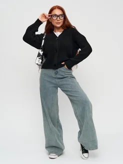 Кардиган черный оверсайз на пуговицах вязаный