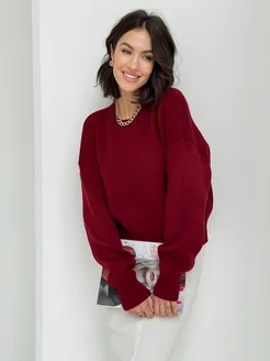 Свитер бордовый оверсайз укороченный вязаный