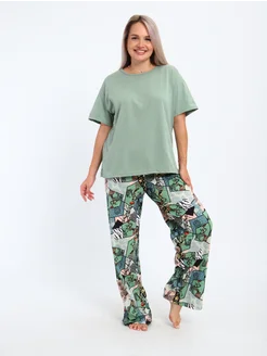 Пижама LarChik с широкими штанами Зигзаг полынь