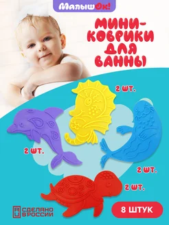 Мини-коврики для ванны "Морские животные" 8 шт