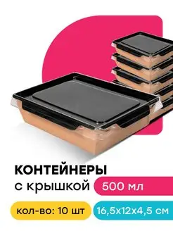 Бумажные контейнеры влагостойкие с крышкой 16,5х12х4,5 см