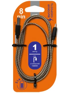 Кабель 2637 нейлон USB A 8pin 1м