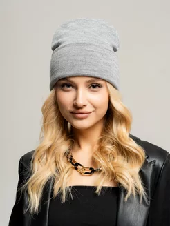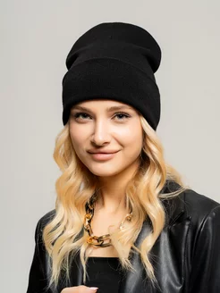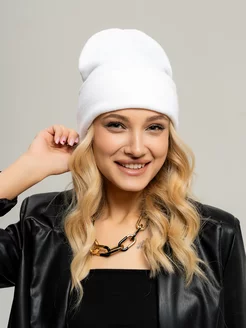 Шапка женская зимняя осенняя вязаная бини с отворотом