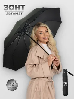 Зонт автомат черный антиветер складной