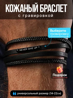 Браслет мужской кожаный на руку с гравировкой