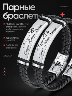 Парные браслеты плетеные для влюбленных с гравировкой