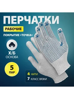 Перчатки трикотажные, х б, ПВХ-точка, 5 пар в упак, 67718