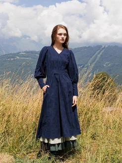Платье синее "Верба" праздничное бохо с длинным рукавом