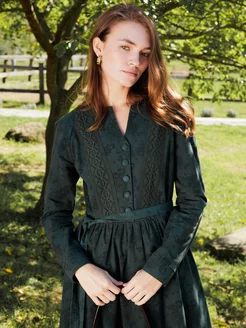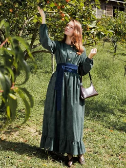 Платье "Агата" зеленое нарядное теплое на осень бохо