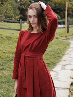 Платье из фланели "СКЛАДКИ" красное винтажное бохо