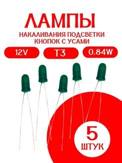 Лампа галогенная с усами зеленая Т3 12V 0.84W 5 штук