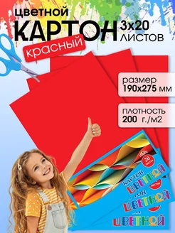 Красный картон цветной 190х275 мм. 20 листов