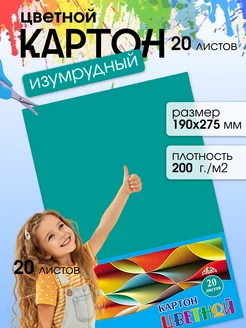 Картон цветной для школы Изумрудный 190х275 мм 20 листов