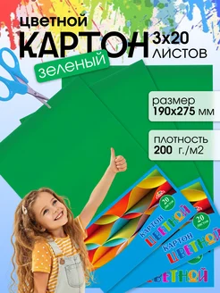Картон цветной для школы Зеленый 190х275 мм 20 листов