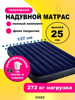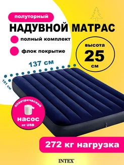 Матрас надувной полуторный с насосом и подушкой 137*191