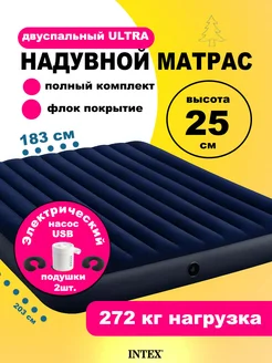 Матрас надувной двуспальный с насосом и подушками 183*203