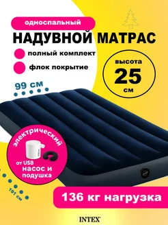 Матрас надувной односпальный с насосом и подушкой 99*191
