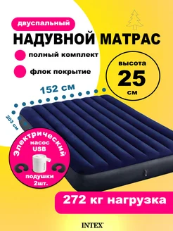 Матрас надувной двуспальный с насосом и подушками 152*203