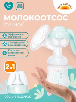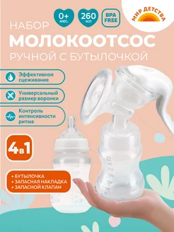 Молокоотсос ручной механический с бутылочкой 180 мл