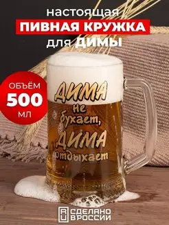 Пивная кружка Дима не бухает отдыхает 500 мл именной подарок