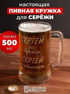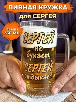 Пивная кружка Сергей не бухает отдыхает