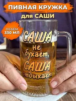 Именная пивная кружка Саша не бухает отдыхает 330мл