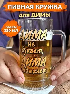 Пивная кружка Дима не бухает отдыхает 330 мл именная