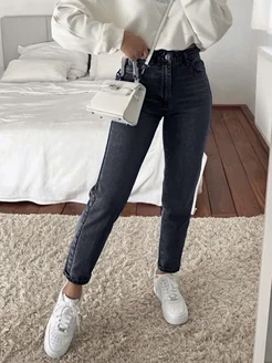 Джинсы с высокой посадкой мом бананы прямые скинни